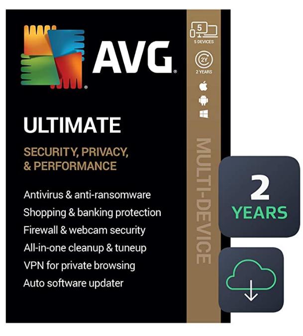 SALE UP TO 40% AVG Ultimate 2022 | Antivirus+Cleaner+VPN | 5 Devices, 2 Years [PC/Mac/Mobile Download]