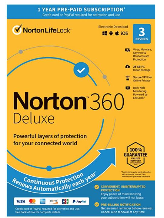 SALE UP TO 67% Norton 360 Deluxe 2022 Antivirus software for 3 Devices with Auto Renewal – Includes VPN, PC Cloud Backup & Dark Web Monitoring [Key Card]
