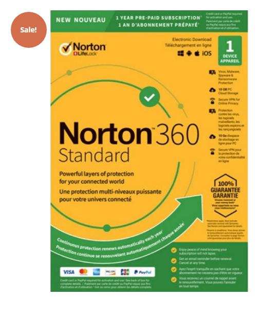 NORTON 360 STANDARD 75% OFF – 1 YEAR / 1 DEVICE – NORTH AMERICA