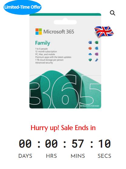 SALE UP TO 60% For Microsoft Office 365 Family 6 Devices, 1 Year – UK/Europe